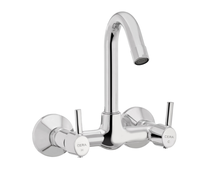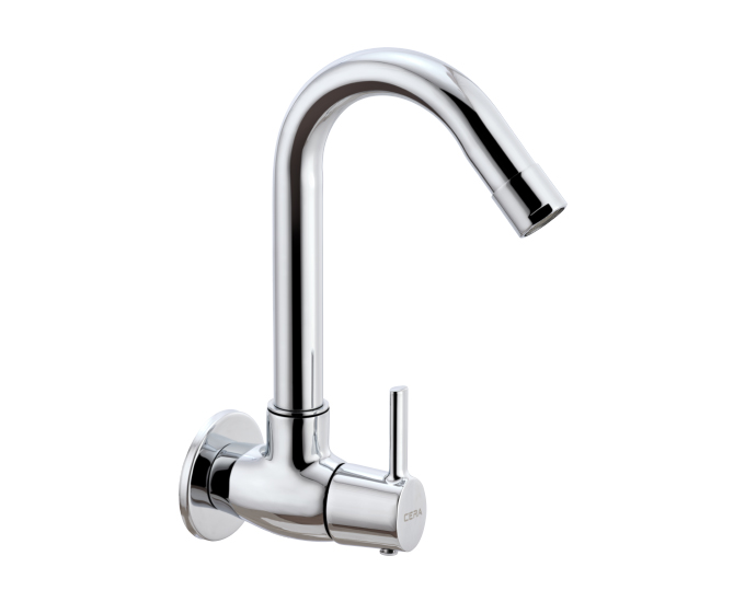 Sink cock (wall mounted) with 165 mm (6.5") long swivel spout and wall flange