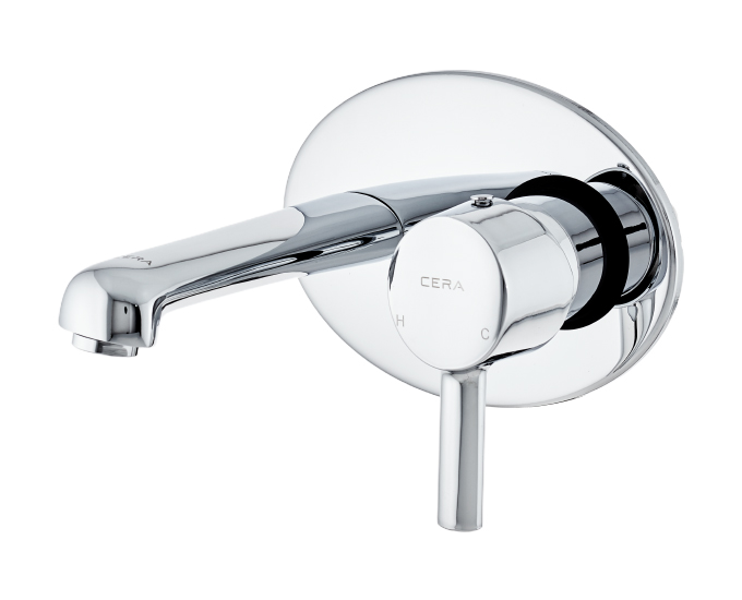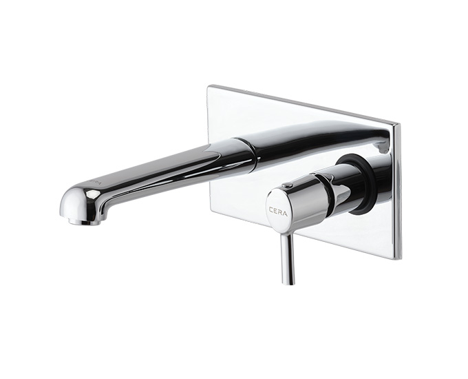 Wall mounted single lever basin mixer consisting of exposed part and concealed part