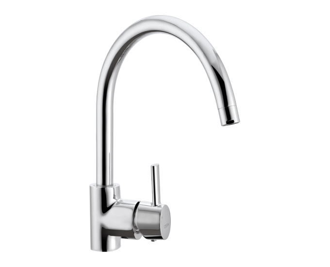 Single lever sink mixer (table mounted) with 235 mm (9") long swivel spout and 450 mm long braided connection pipe