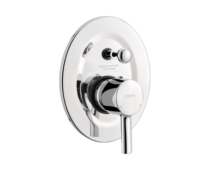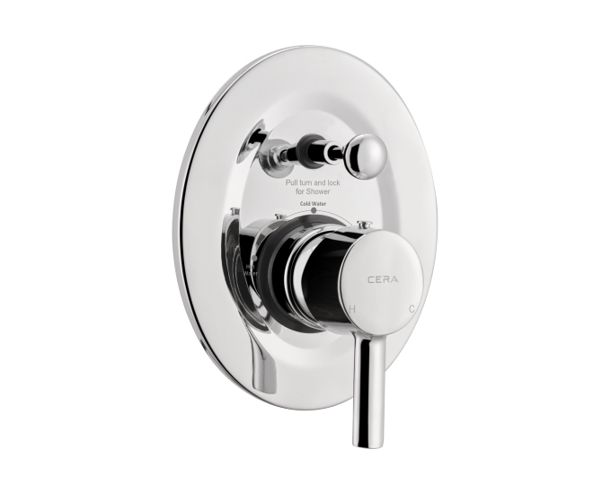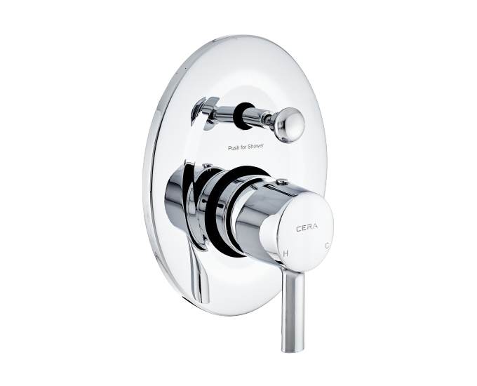 Single lever concealed diverter system consisting of Exposed part (lever, tip ton knob, wall flange) and Concealed part (40 mm cartridge with button assembly, cartridge sleeve)